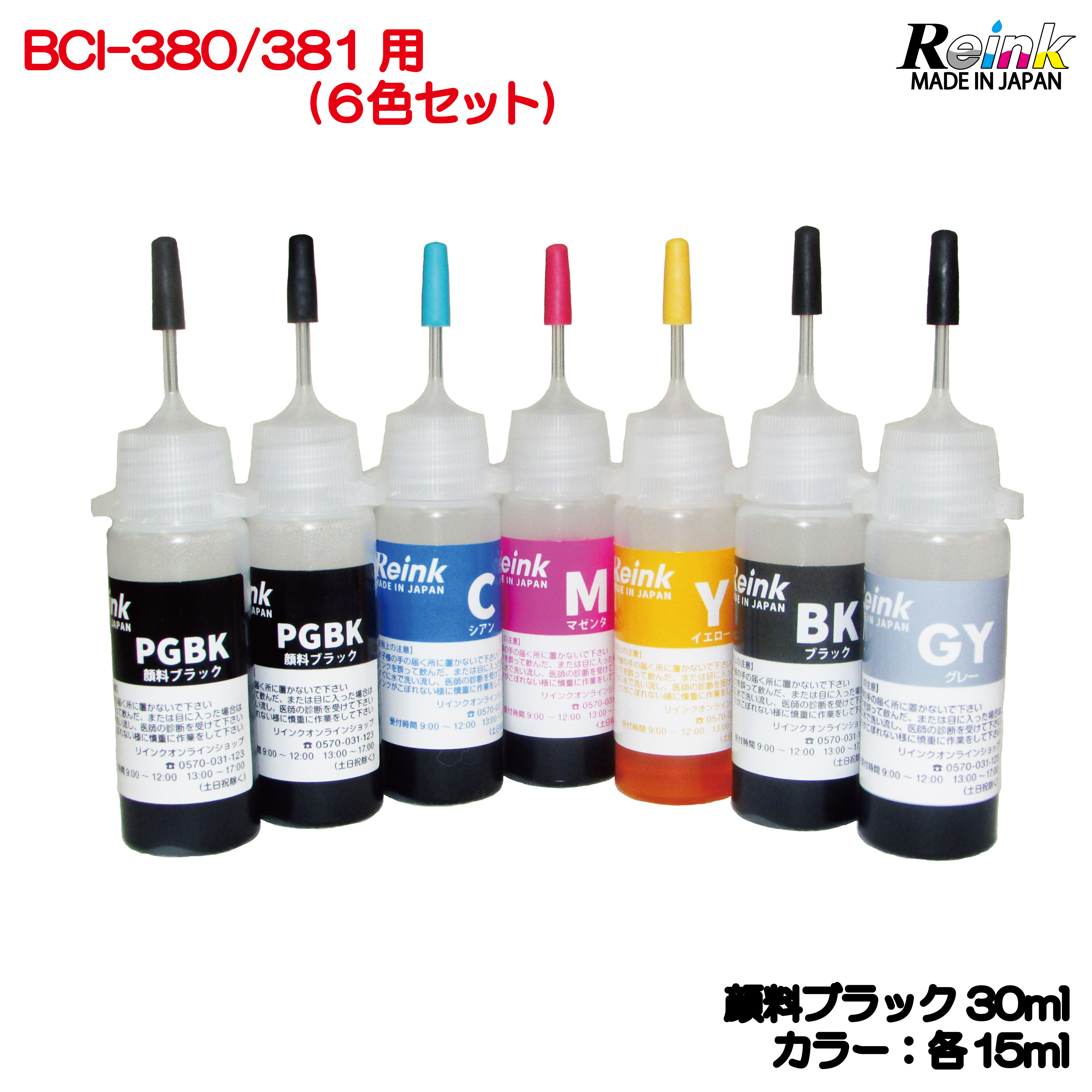 キヤノン BK増量 BCI-380/381用 詰め替えインク 6色セット(各15ml)リインクオンラインショップ