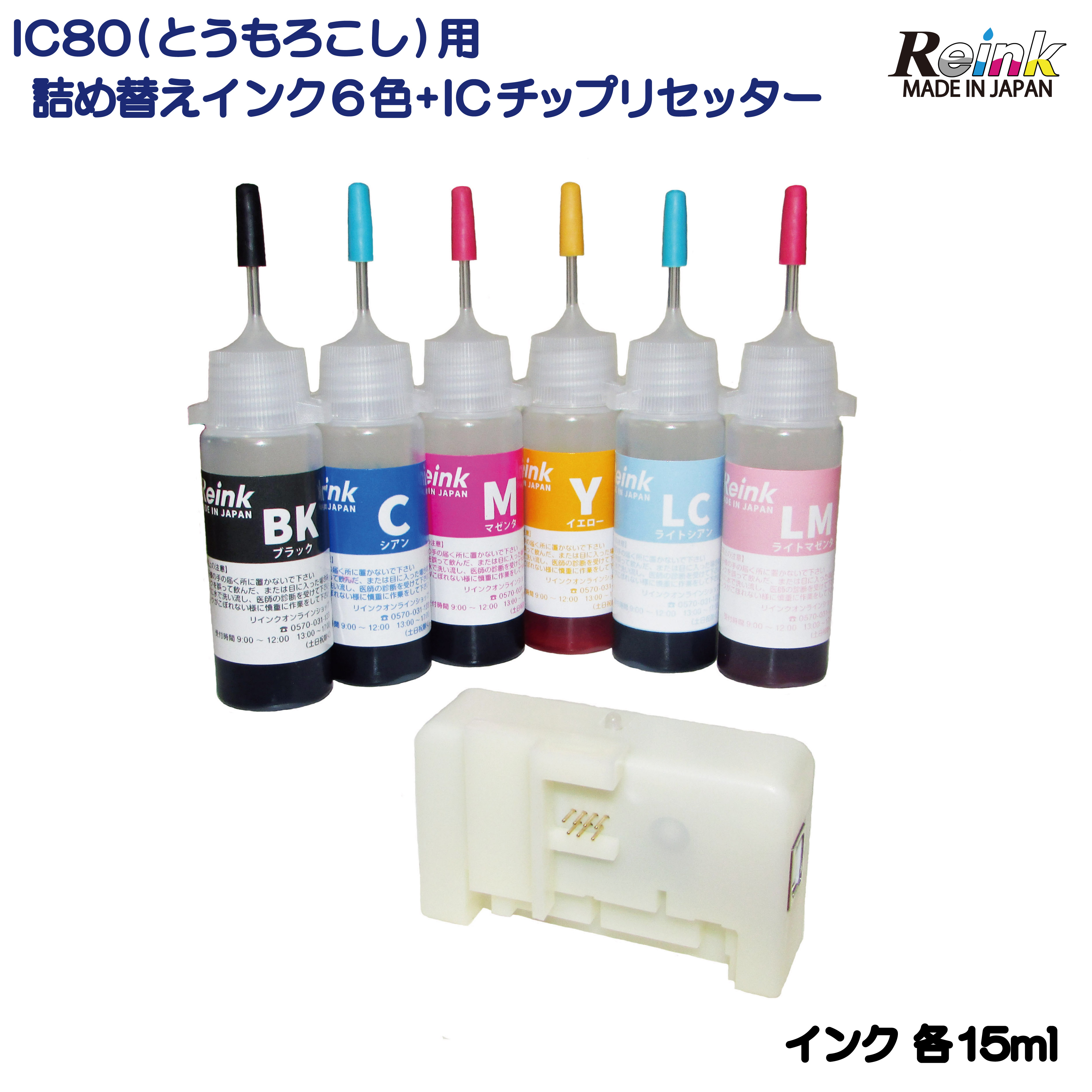 EPSON IC80( IC6CL80L ) IC70( IC6CL70L ) リセッター付 詰め替え インク 6色 セット(各15ml) リインクオンラインショップ