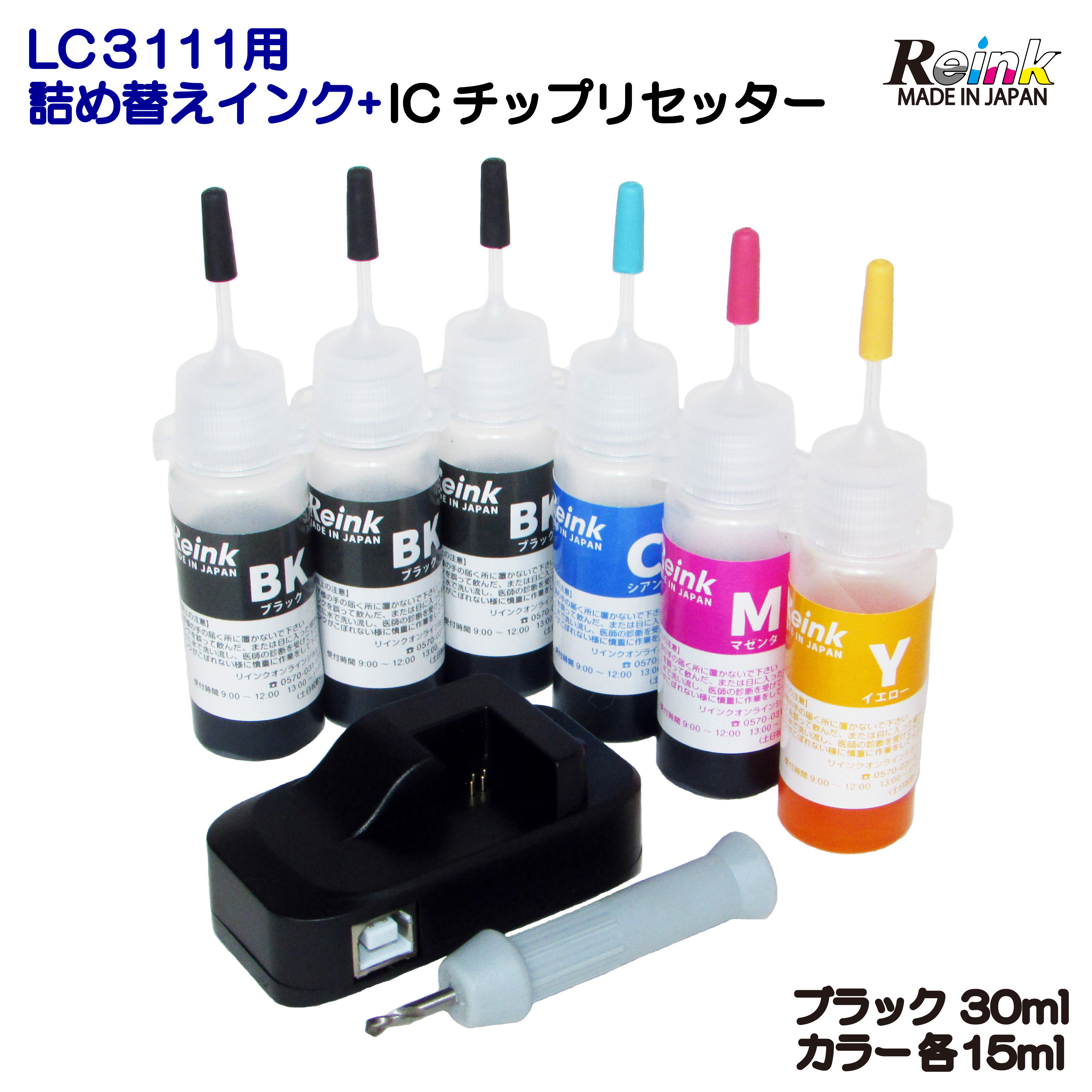 Brother ブラザー LC3111 用 詰め替えインク 4色 + リセッター セット リインクオンラインショップ