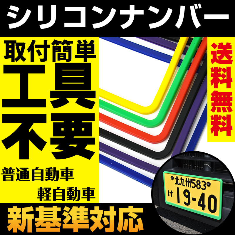新基準 適合 ナンバーフレーム シリコン シリコンカバー 全6色 1枚 ナンバープレート やわらか素材 工具不要 簡単装着