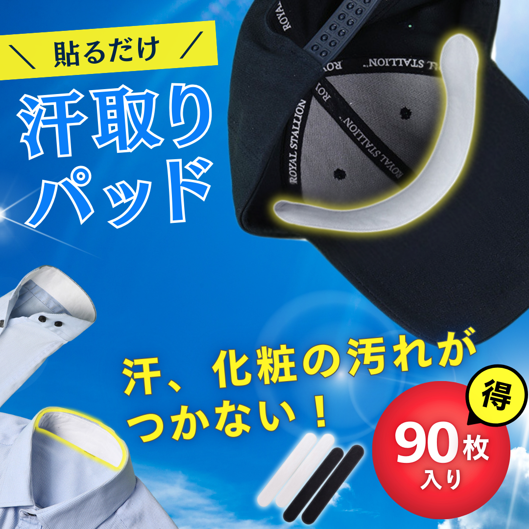 汗取り パッド 帽子 汗取りテープ 90枚 帽子 汗取りシート キャップライナー 襟 キャップ 汗取りシール 汗吸収 消臭
