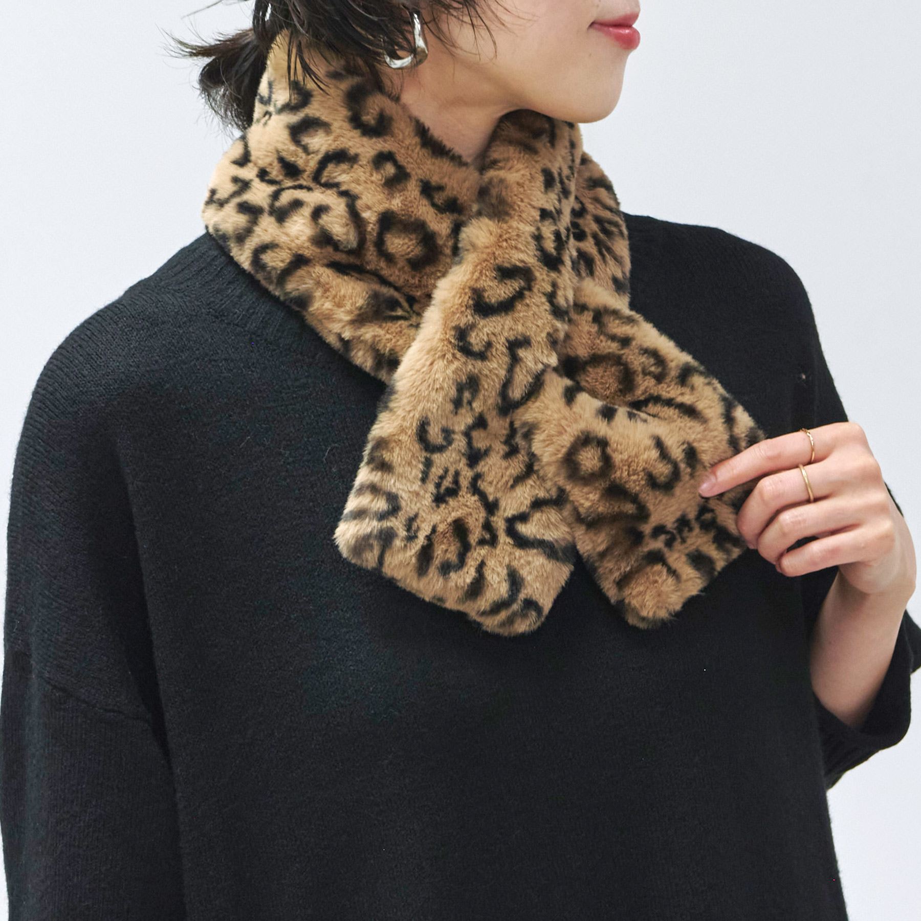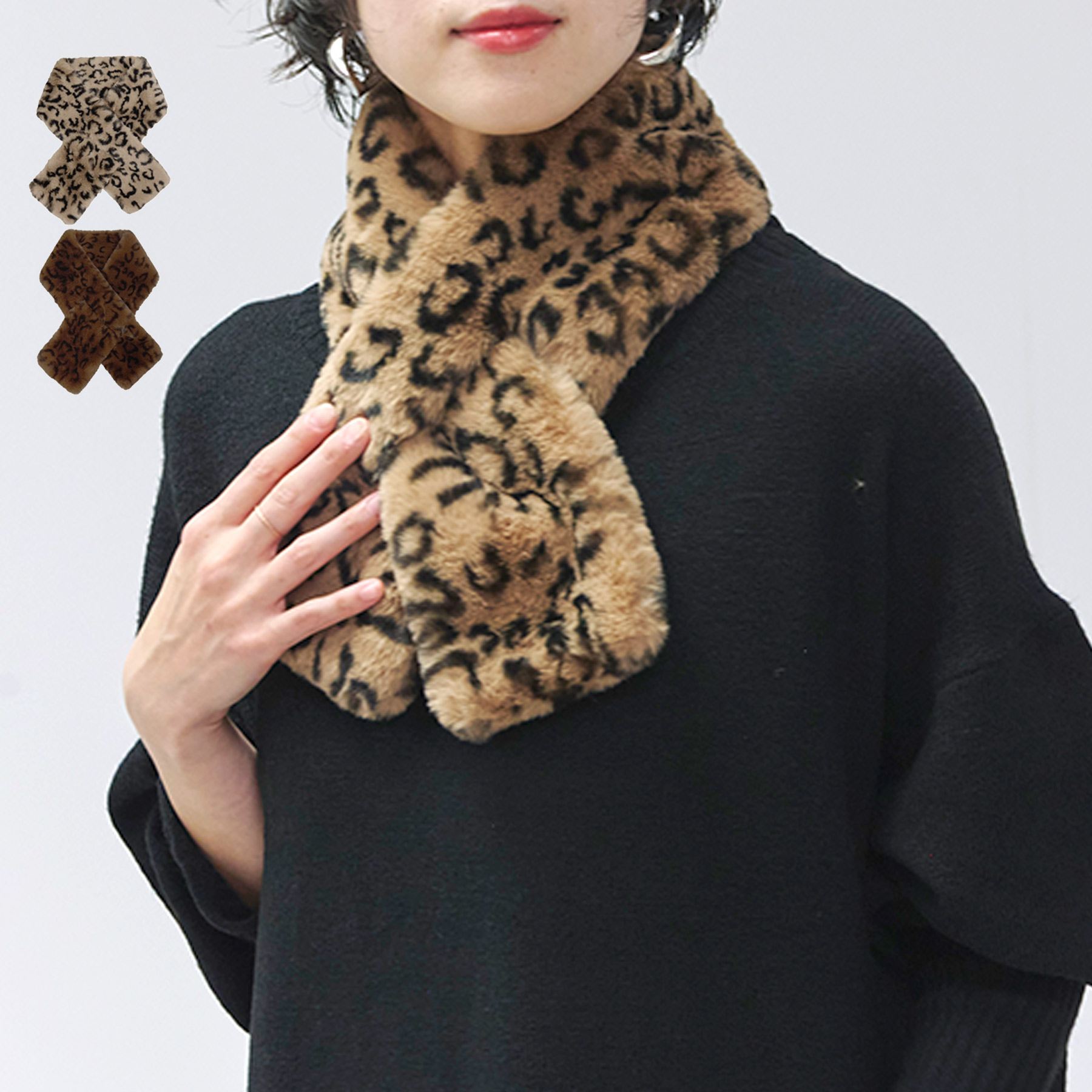 ティペット レディース レオパード フェイクファー 秋 冬
