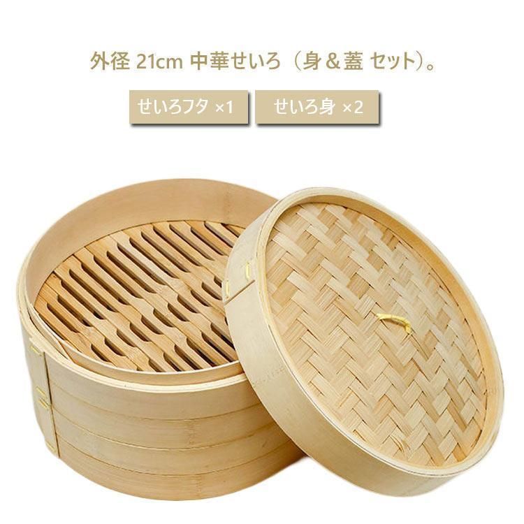 せいろ 蒸篭 天然竹 セイロ せいろフタ×1 せいろ身×2 身&蓋 セット 21cm 業務用 中華せいろ 蒸し器 蒸篭 点心 せいろ蒸し 業務用 家庭