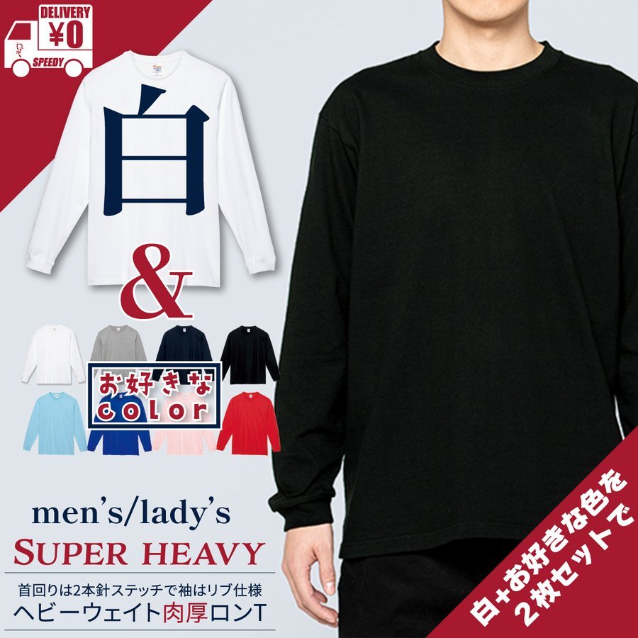 まとめ買い 2枚セット 無地 ロンt 白 & お好きな色 ティーシャツ tシャツ Tシャツ 長袖 メンズ レディース