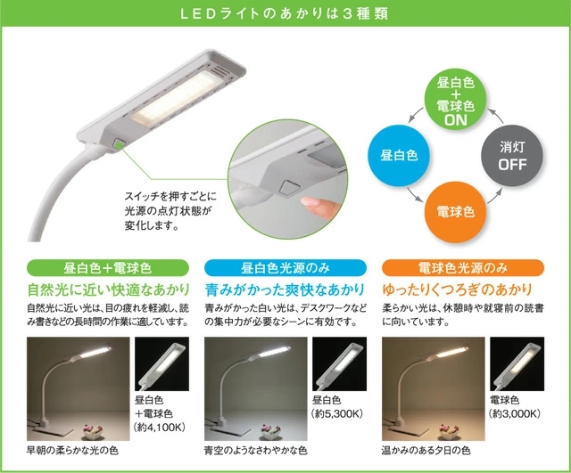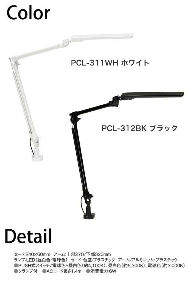 LEDデスクライト コイズミ アームライト PCL-311WH PCL-312BK クランプ式 調光 昼白色 電球色 PUSH式スイッチ 学習机照明【Y/108】【koi10】