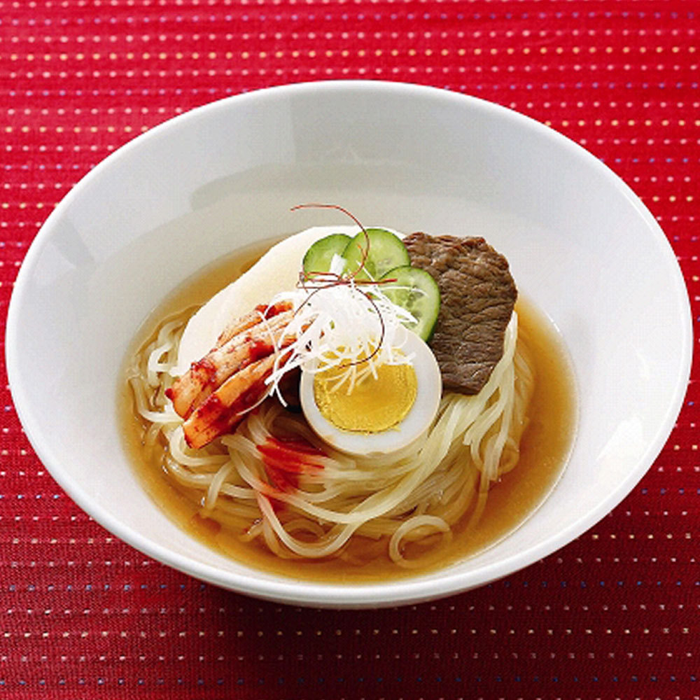 おなじみ盛岡冷麺、ご家庭でもあの本場盛岡冷麺をお楽しみ頂けます。そもそも盛岡冷麺のルーツは朝鮮半島の北西・平壤ですが、昭和初期に盛岡で日本人の繊細な味覚にあうよう、改良に改良を重ね盛岡に誕生しました盛岡冷麺。以来地元盛岡だけではなく、日本中にその味は親しまれるようになりました。でんぷんと小麦粉をベースとしたつるつるとした腰の強い独特の麺と牛バラや牛骨、鶏だしの旨みの詰まったピリ辛のスープ。絶妙の美味しさです。一度食べたら本当にヤミツキ!絶対おすすめです