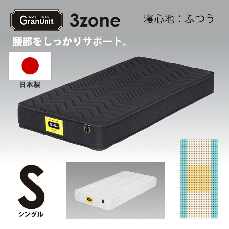 マットレス シングル 選べる2色 970×1950×250mm ふつう エッジブロック 国産 スプリング ポケットコイル 防ダニ 抗菌防臭 グランツ グランユニット
