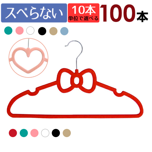 ハンガー すべらないハンガ− おしゃれ ハートとリボンのセット 10本単位で選べる6色 100本セット