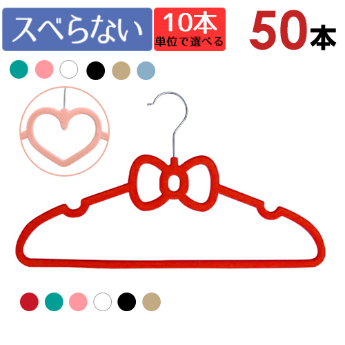 ハンガー すべらないハンガ− かわいい おしゃれ ハートとリボン セット 10本単位で選べる6色 50本