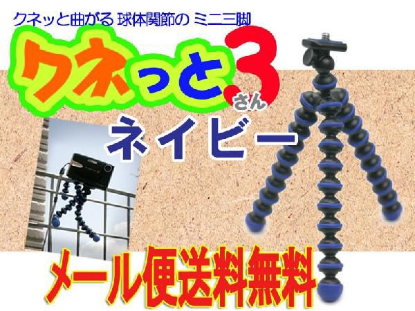 クネっと3 (ネイビー Navy 紺) 滑り止めつきの3本の脚がフレキシブルに曲がる小型軽量三脚