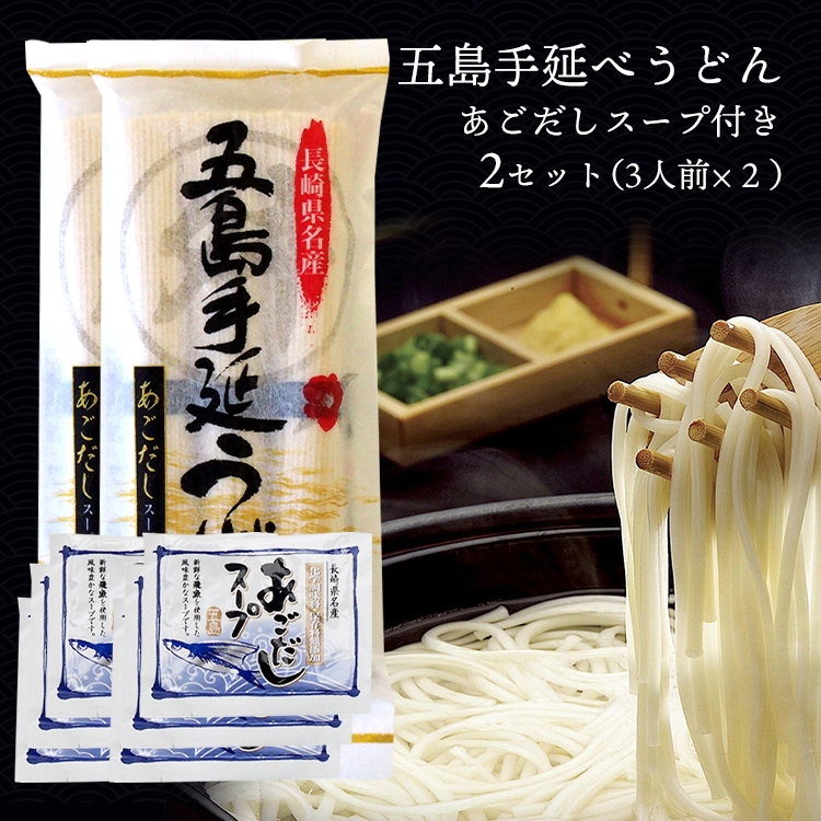うどん 長崎 2袋 おいしい 五島うどん 乾麺 手延べ もちもち つるつる ギフト 地獄炊き 3食分×2袋セット あごだし スープ付き メール便送料無料