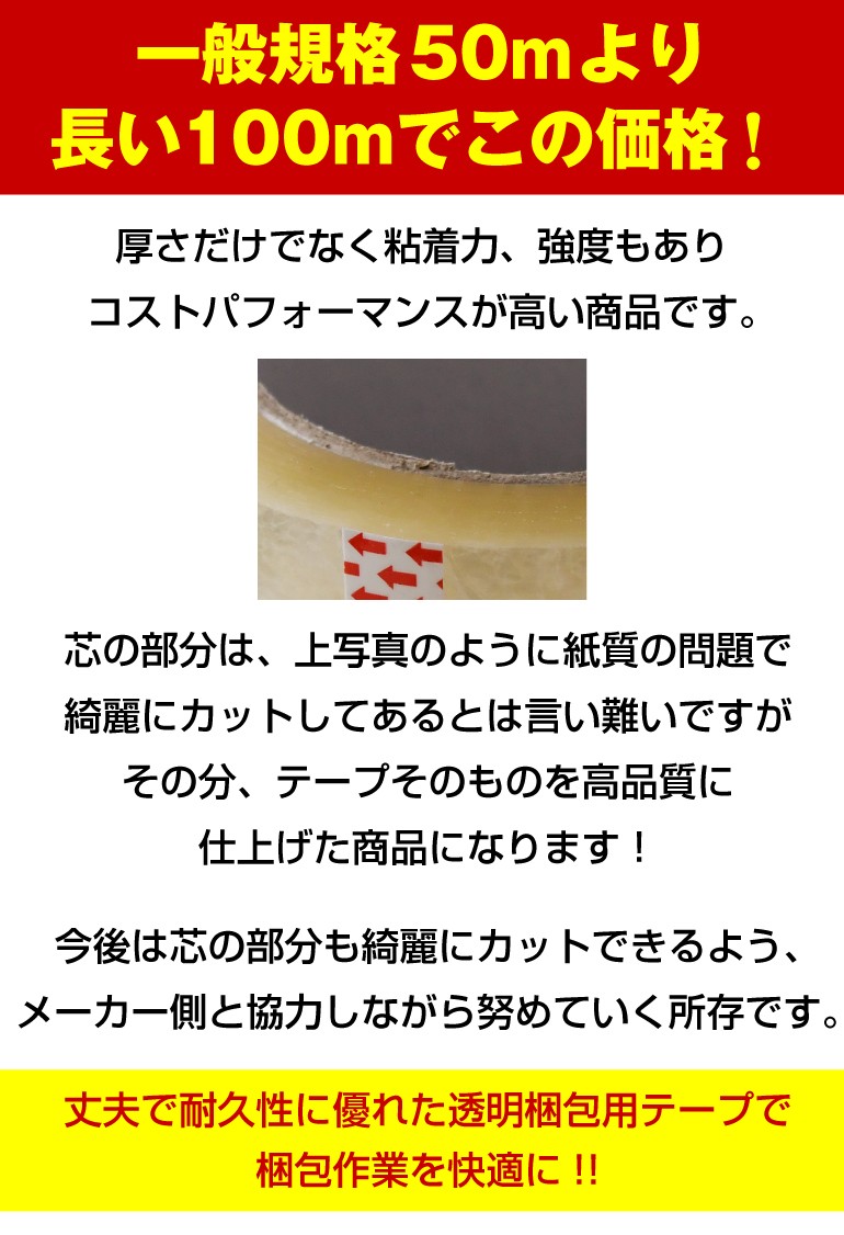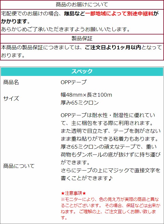 OPPテープ 48mm×100m 50巻セット 透明テープ 65ミクロン 極太