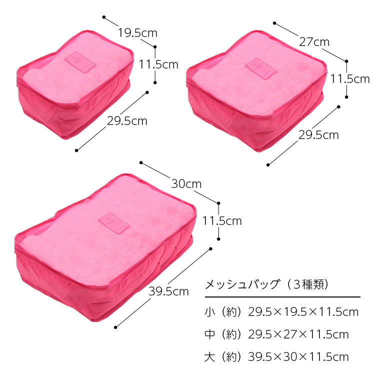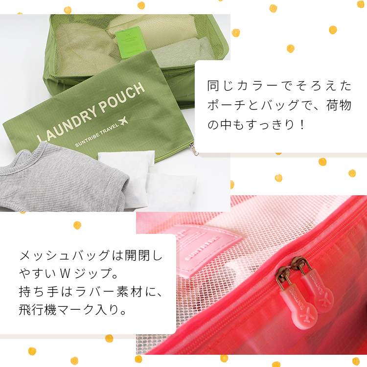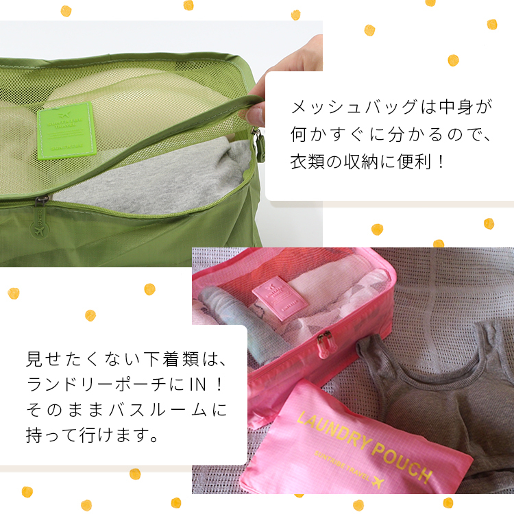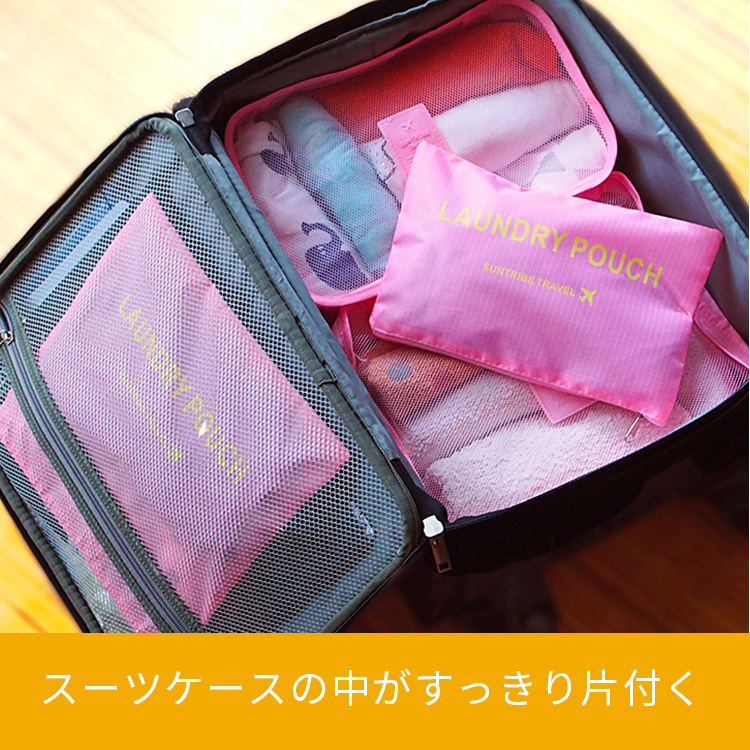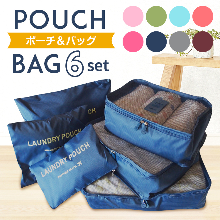 旅行収納ポーチ 6点セット 旅行 衣類収納ケース 収納 ポーチ トラベル 選べる8色 整理 便利 バッグインバッグ メール便送料無料