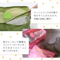 3点のメッシュバッグは片面メッシュ使いなので、中身が見えて収納や整理に大活動します。