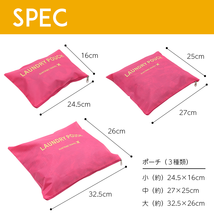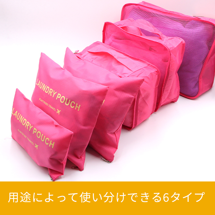 特徴:用途によって使い分けできる、便利な収納ポーチ&バッグの6点セットです。