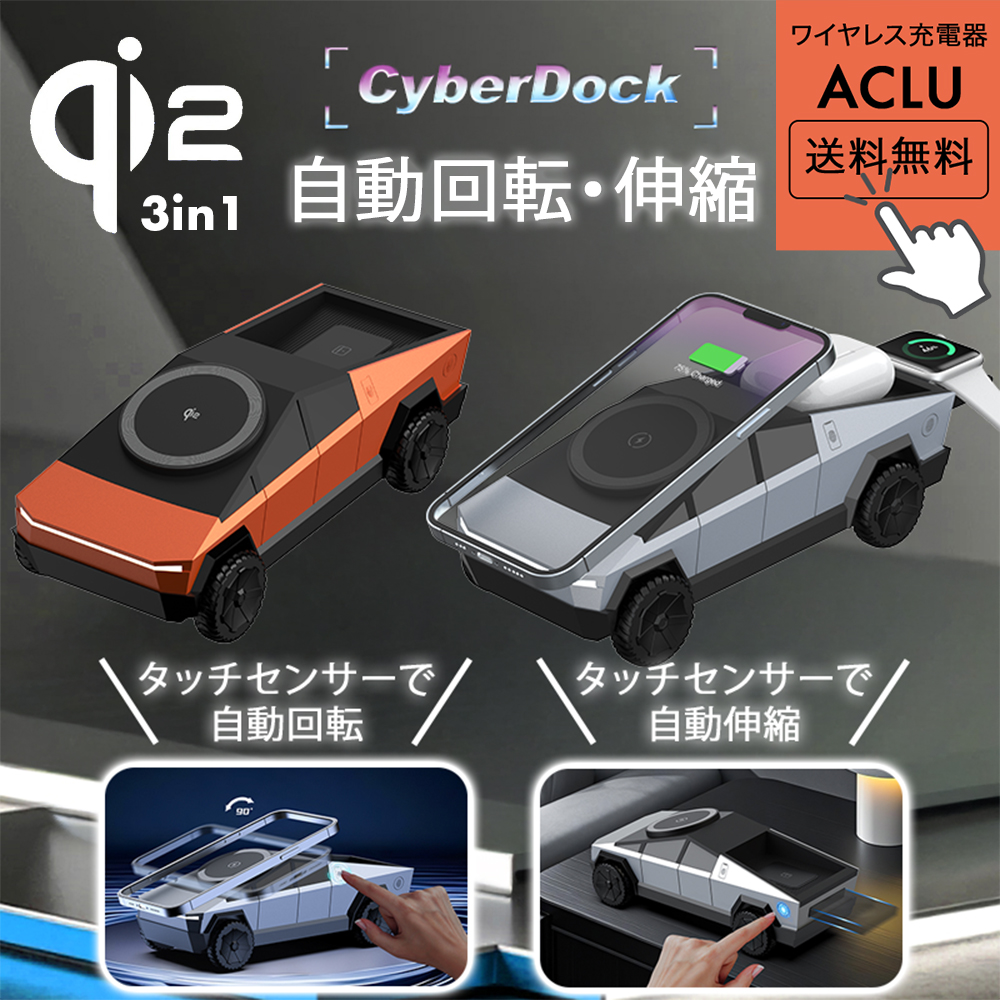 【イノベーション賞受賞】車型 Qi2 ワイヤレス充電器 3in1 CyberDock タッチセンサー 自動回転 自動伸縮 iPhone 15W MagSafe iPhone 17 Air Pro Max マグネット