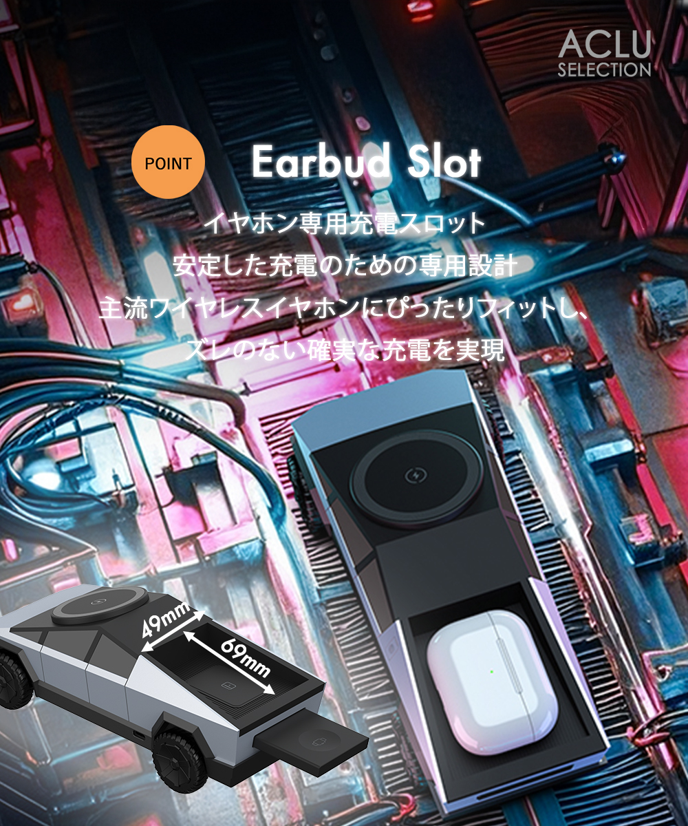 【POINT】イヤホン専用充電スロット搭載 安定した充電のための専用設計。 イヤホンにぴったりフィットし、ズレのない確実な充電を実現します。
