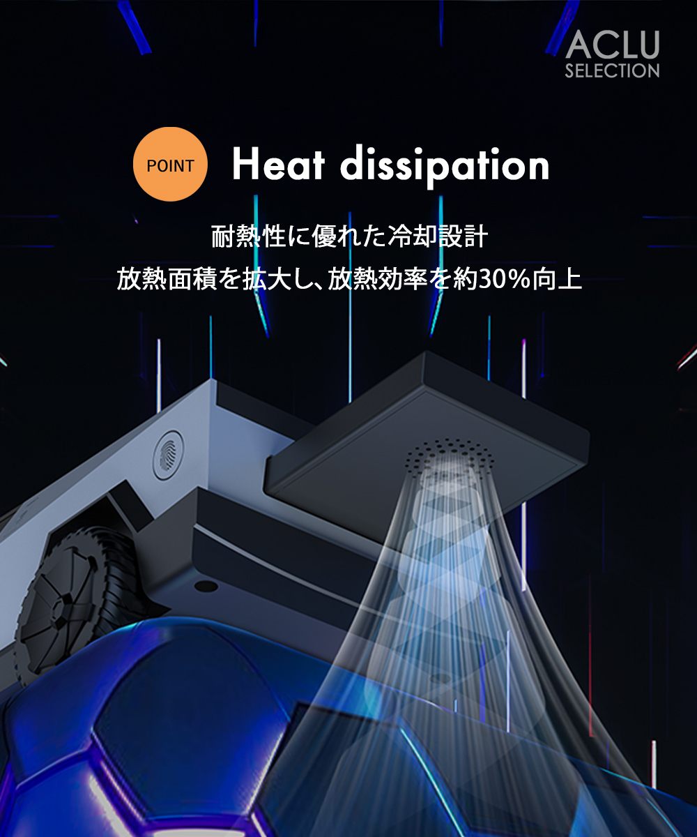 【POINT】耐熱性に優れた冷却設計 放熱面積を拡大し、放熱効率を約30%向上。 発熱を抑え、安定した充電をサポート。