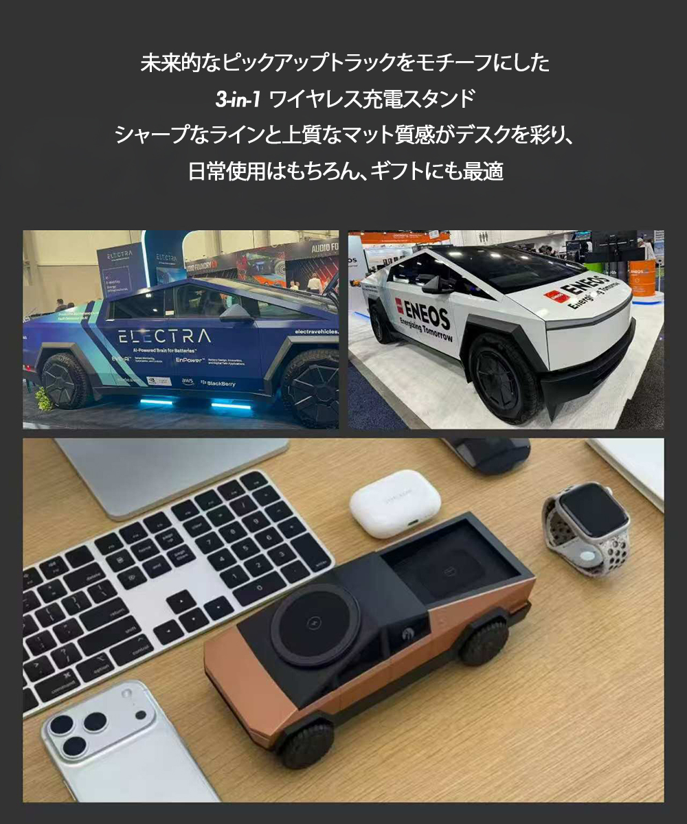 検索関連ワード(本商品の説明ではありません):【イノベーション賞受賞】車型 Qi2 ワイヤレス充電器 3in1 CyberDock タッチセンサー 自動回転 自動伸縮 iPhone 15W MagSafe iPhone 17 Air Pro Max マグネット マグセーフ Qi2 ワイヤレス充電スタンド Android ワイヤレス充電 Apple Watch AirPods 充電器 Pixel 10 シリーズ ワイヤレス充電器 3in1 充電スタンド Qi2 認証 マグネット MagSafe 対応 強磁力 iPhone 充電器 iPhone13 iPhone14 iPhone15 iPhone16 iPhone17 Android Qi2 Pixel 10 Pixel 10 Pro Pixel 10 Pro XL Pixel Fold Apple Watch 充電器 Apple Watch スタンド AirPods 充電器 ワイヤレスイヤホン 充電 3台同時充電 高速充電 15W 縦置き 横置き 自動回転 タッチセンサー 自動伸縮 冷却設計 放熱設計 LED ライト デスク用 卓上 充電器 おしゃれ 高級感 近未来 デザイン ギフト プレゼント 車型 Qi2 3-in-1 ワイヤレス充電器