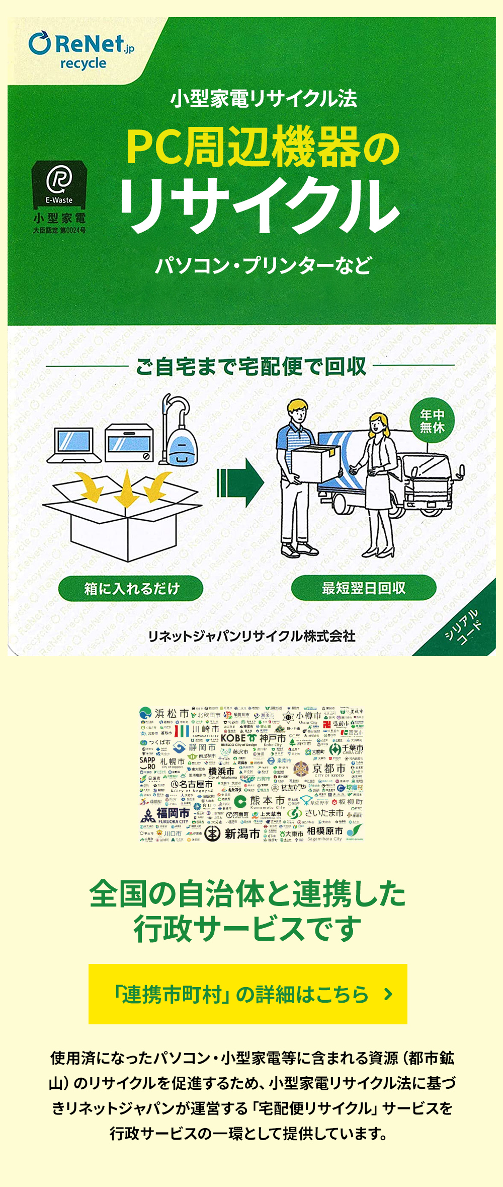 ・環境大臣・経済産業大臣から認定を受けた「リネットジャパン」が回収・リサイクルを行います。