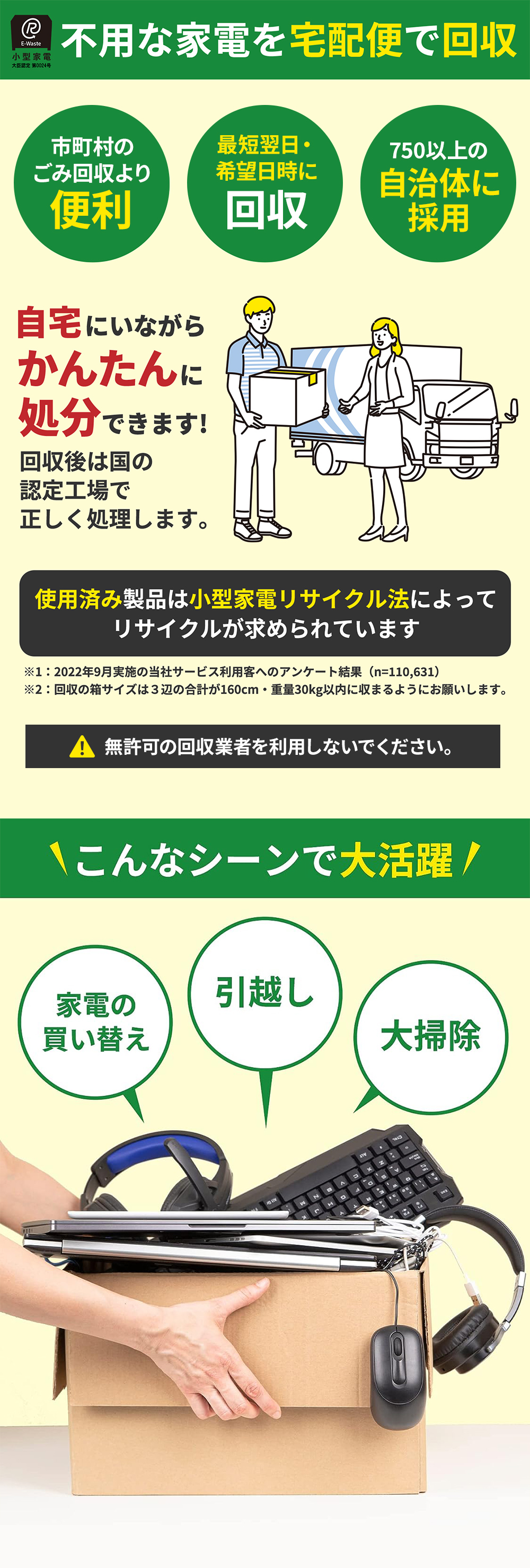 ・本サービスには段ボール1箱分の宅配便送料・リサイクル費用が含まれます。