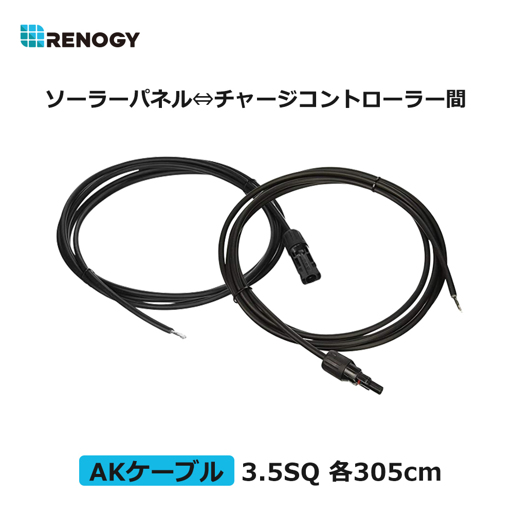 RENOGY レノジー AKケーブル ソーラーパネル チャージコントローラー 間配線ケーブル 片方MC4コネクター付き 3.5SQ 2本 各305cm 許容電流44A