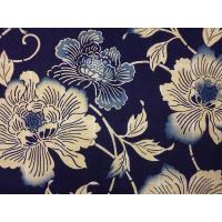紺地に蟹牡丹と唐草をシックに染め上げました。牡丹の花はボカシで友禅風に染めています。