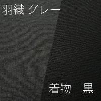 黒色の着物と、グレーの羽織のセットです。生地は紬(つむぎ)です。着物と羽織を異なった同系色で組み合わせており、さりげなくおしゃれな印象で着こなせます。