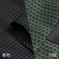 着物が濃紺に市松柄(チェック柄)で、羽織が緑に長七宝柄のおしゃれ紬のセットです。パーティーやイベントの他、旅行・散策などカジュアル用途におすすめです。