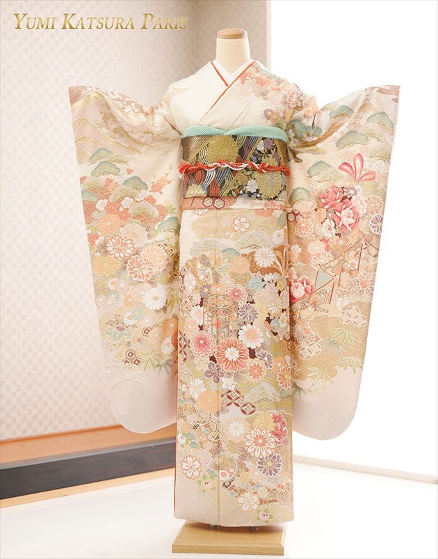 レンタル振袖 「桂由美」ブランド ピンクベージュ絢爛慶び金刺繍《振り袖》