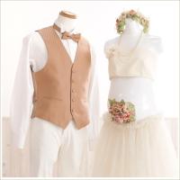 マタニティードレス、花かんむり、サッシュベルト、ネックレス、メンズベスト、蝶ネクタイ、ウィングカラーシャツ