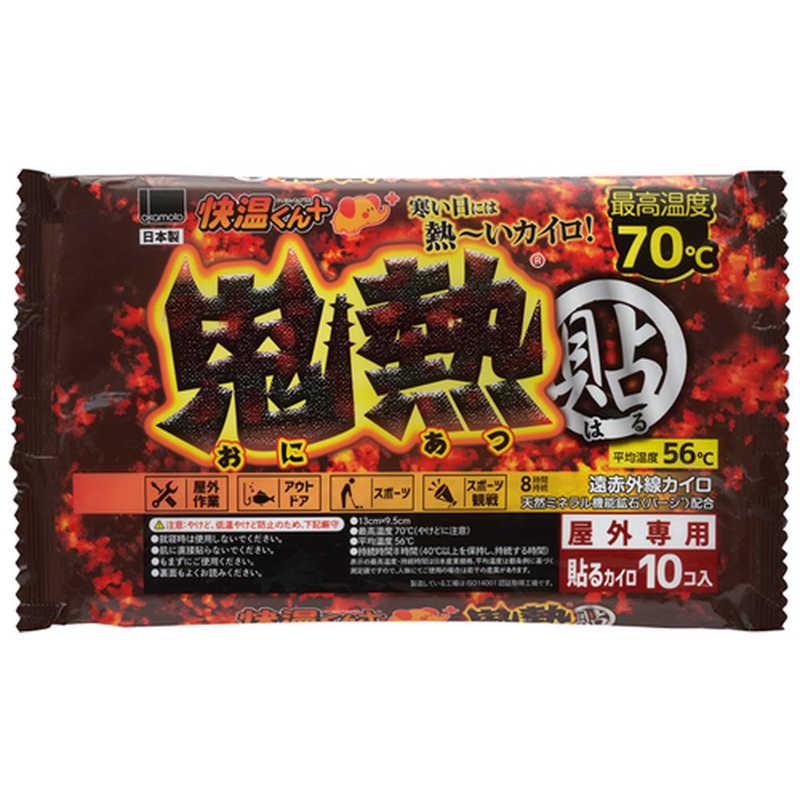 快温くん 貼るカイロ 鬼熱 + オカモト 高温カイロ 10枚入り レギュラーサイズ/約8時間持続 アウトドア スポーツ 観戦 防災