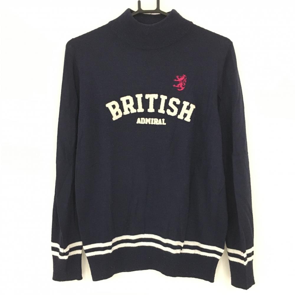 アドミラル ハイネックセーター ネイビー×白 ニット ウール混 レディース L ゴルフウェア Admiral