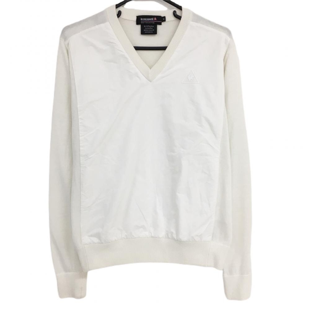 ルコック セーター 白 胸元ロゴ Vネック 異素材切替 ウール混 ニット メンズ M ゴルフウェア le coq sportif
