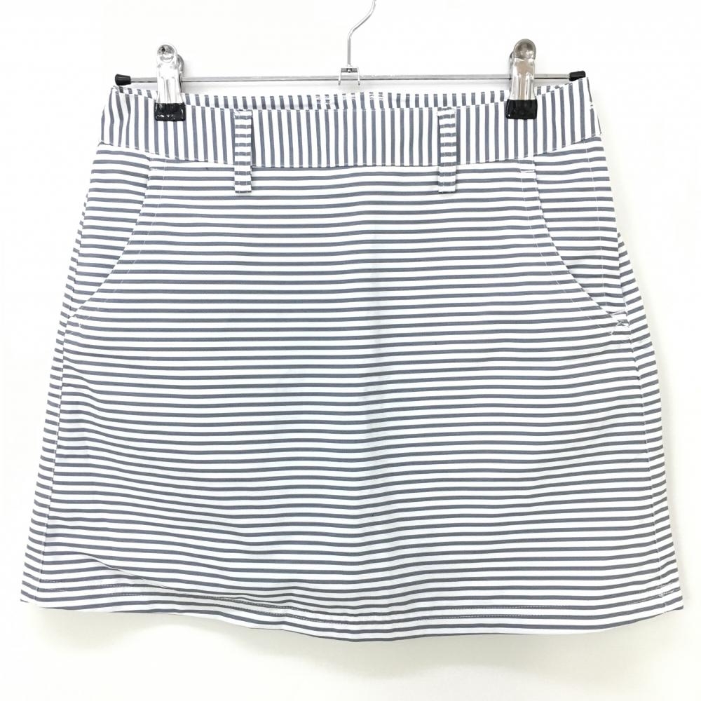 アディダス スカート 白×グレー ボーダー柄 バックロゴ刺しゅう レディース M/M ゴルフウェア adidas