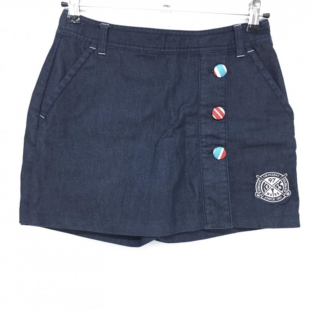 キスマーク スカート ネイビー×白 デニム ストレッチ 内側インナーパンツ レディース 9 ゴルフウェア (美品)