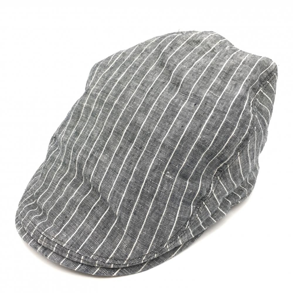 マンシングウェア ハンチング帽 グレー系×白 ストライプ 麻100% 裏地付 FREE ゴルフウェア Munsingwear(超美品)/35%OFF価格