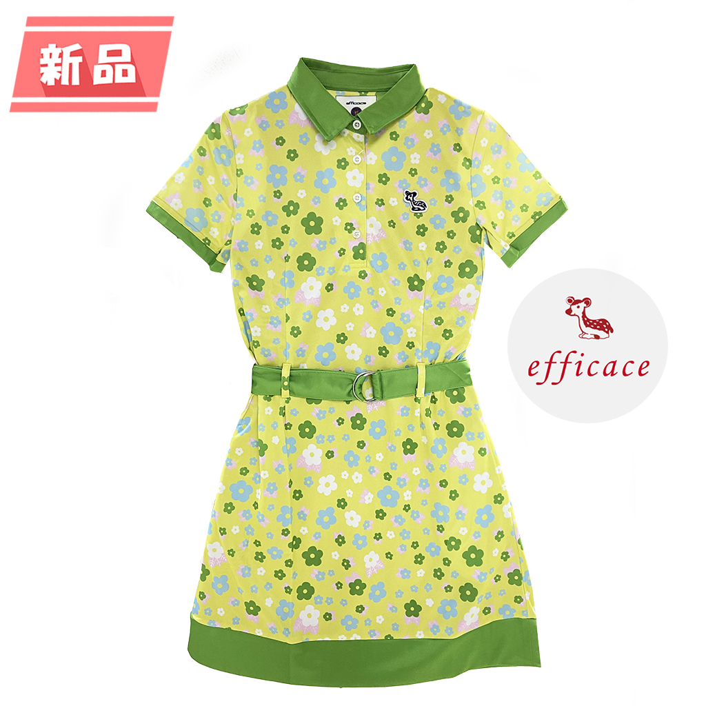 エフィカス 半袖ワンピース イエロー×ライトグリーン 花柄 インナーパンツ付き レディース 2(M) ゴルフウェア efficace(新品)