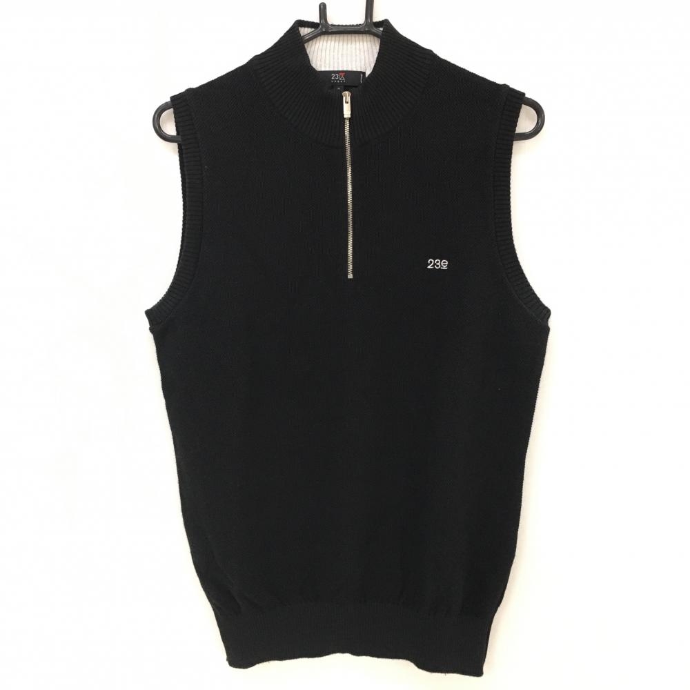 23区スポーツ ニットベスト 黒 ハーフジップ ロゴ刺しゅう 麻混 メンズ 2(L) ゴルフウェア 23区/SALE価格