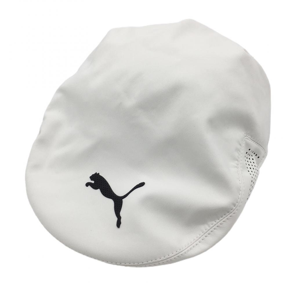 【美品】プーマ ハンチング帽 白×黒 シリコンワッペン OSFA ゴルフウェア PUMA/10%OFF価格