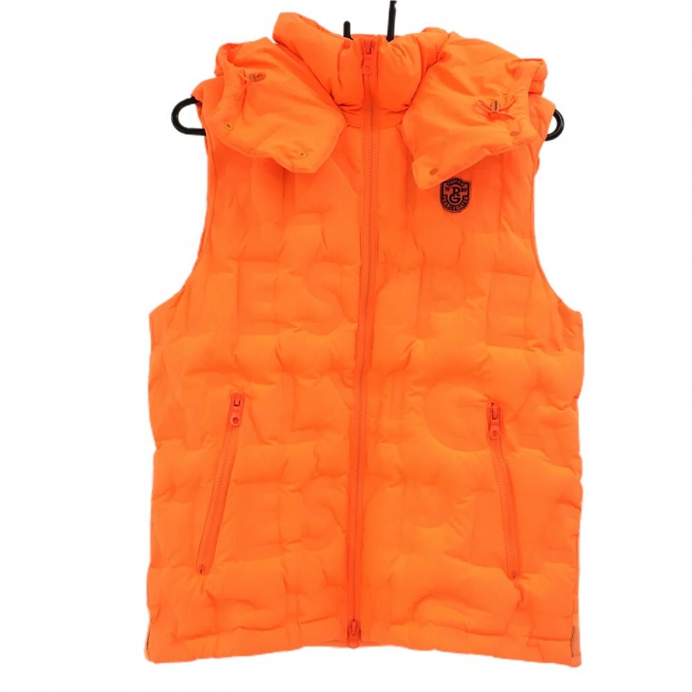パーリーゲイツ 2WAYダウンベスト 蛍光オレンジ ロゴ型押し フード着脱可 メンズ 4(M) ゴルフウェア PEARLY GATES