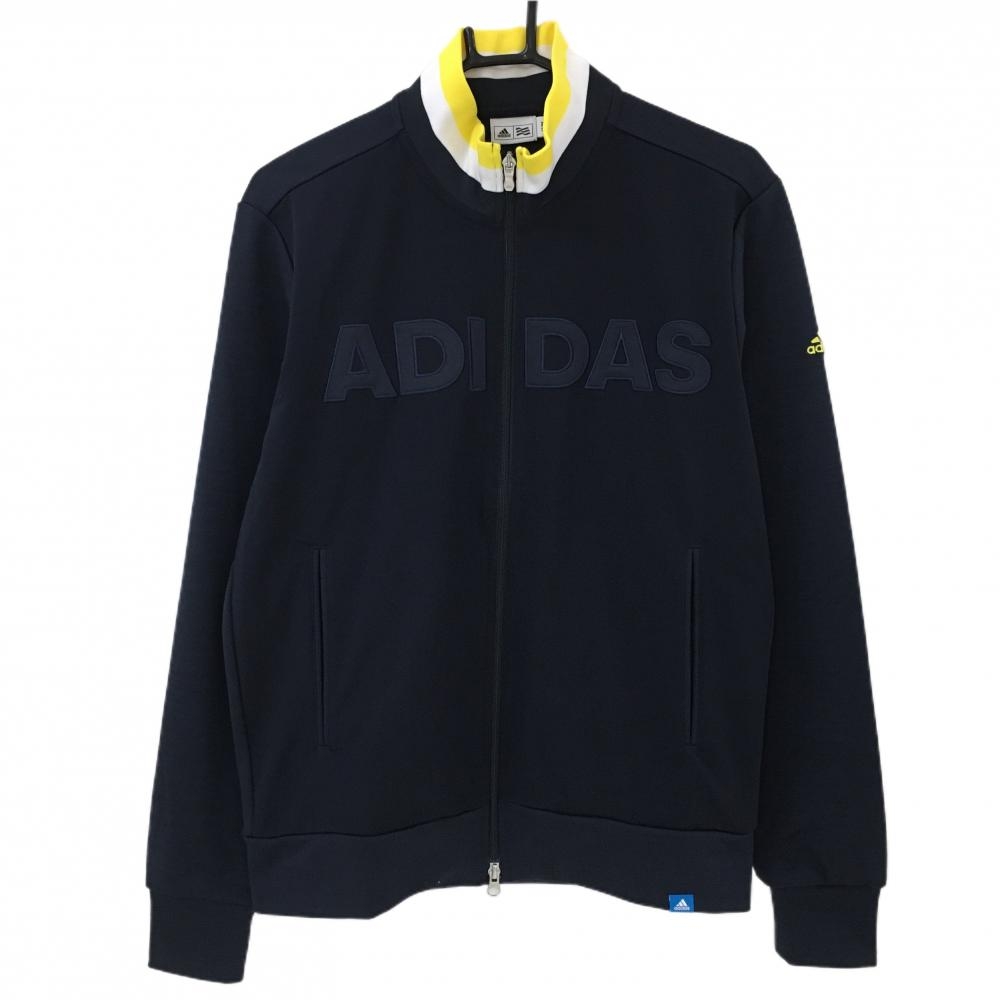 【美品】アディダス ジャケットブルゾン ネイビー×イエロー 内側パイル地 フロントロゴ メンズ M/M ゴルフウェア adidas