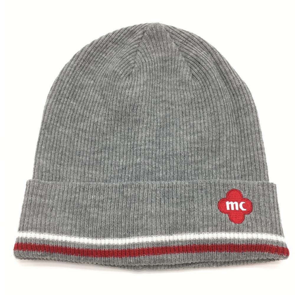 【超美品】マリクレール ニット帽 グレー×レッド アクリル混 レディース ゴルフウェア marie claire