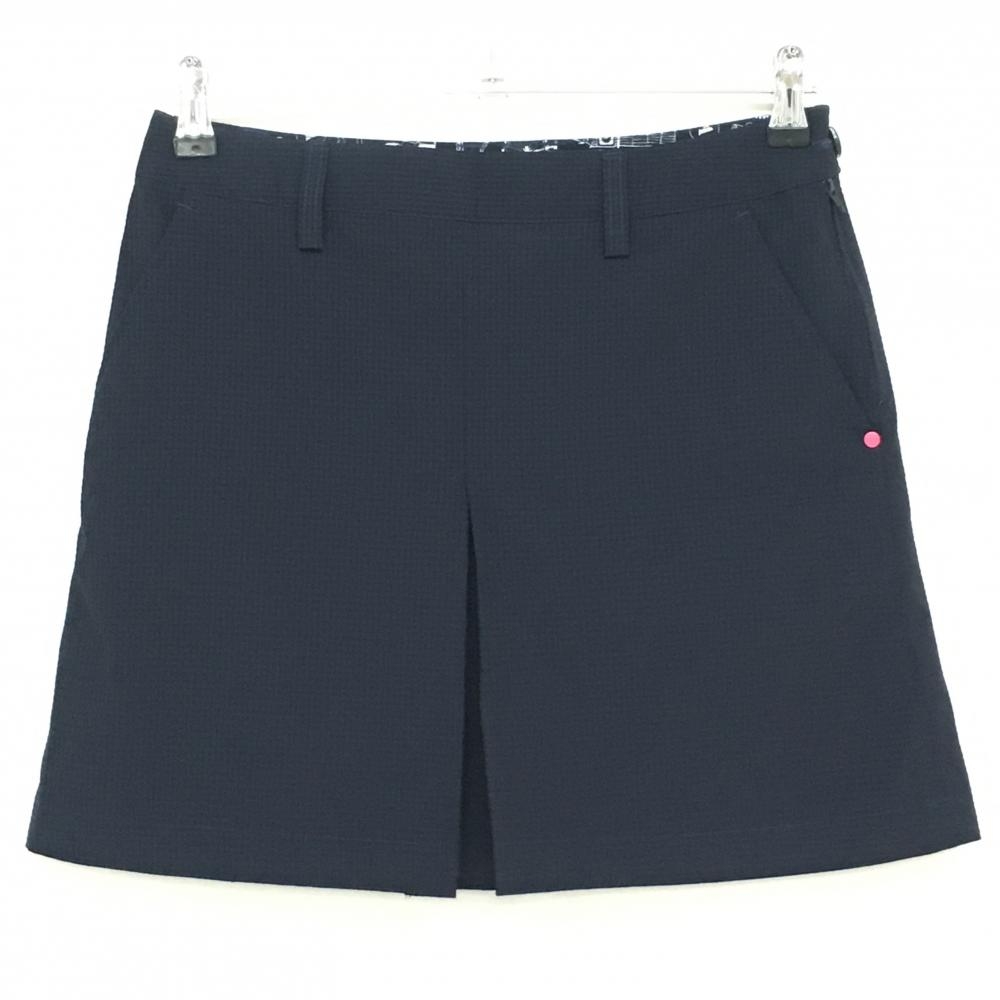 アディダス スカート ネイビー×黒 チェック サッカー生地 ボックスプリーツ レディース S/P ゴルフウェア adidas(超美品)