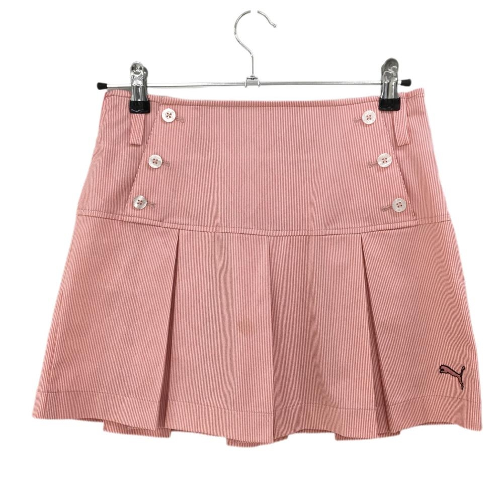 プーマ スカート レッド×白 細ストライプ 裾プリーツ レディース M ゴルフウェア PUMA(美品)
