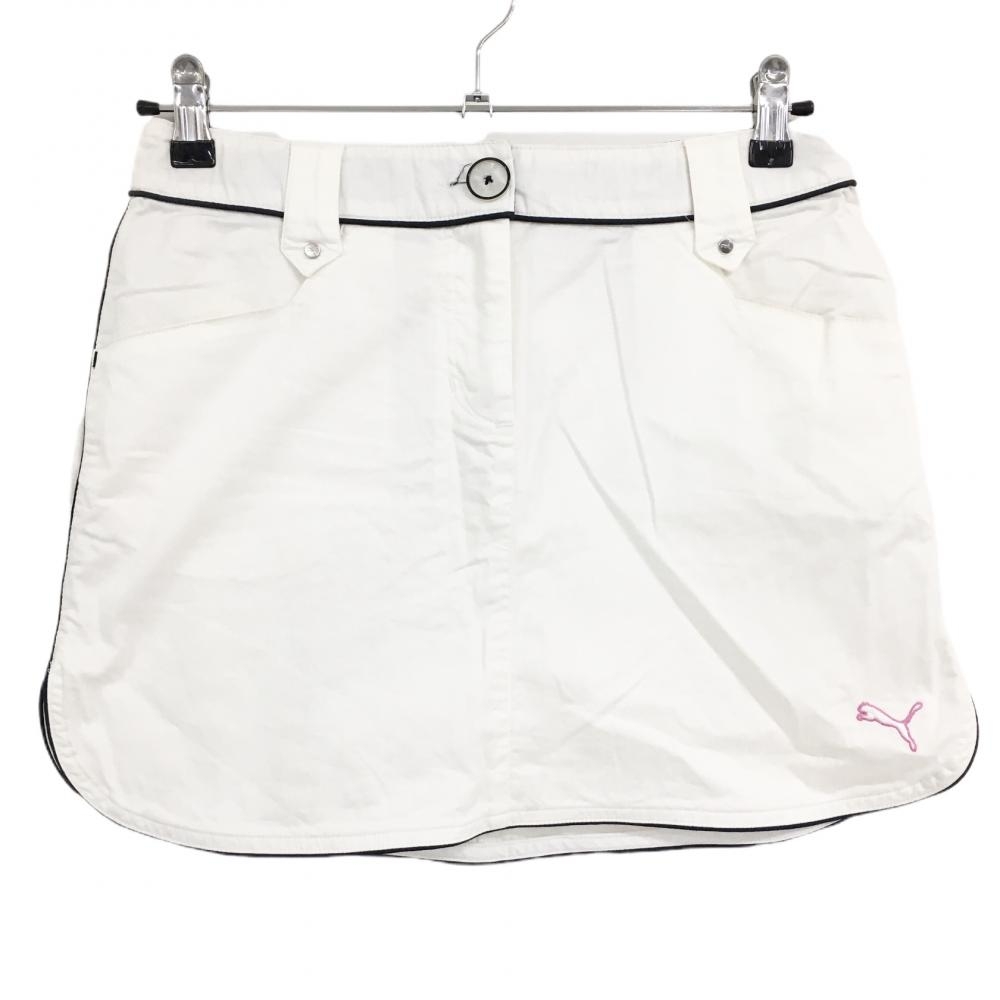 プーマ スカート 白×黒 ピンストライプ地模様 パイピング ティー装着可 レディース S ゴルフウェア PUMA