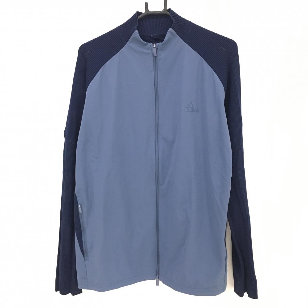 アディダス ニット切替ジャケット ネイビー×ブルーグレー 袖リブニット ダブルジップ メンズ ゴルフウェア adidas/SALE価格