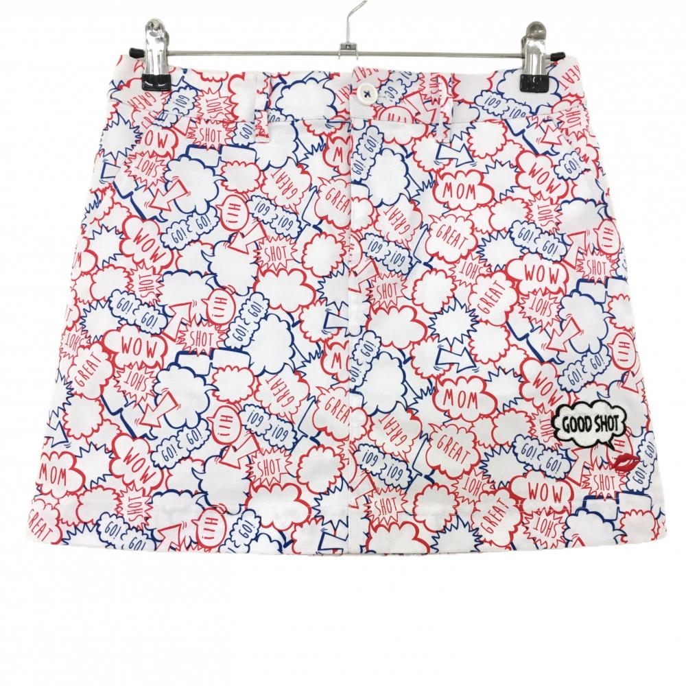 キスマーク スカート 白×レッド×ブルー 総柄 内側インナーパンツ レディース 9(M) ゴルフウェア Kissmark(超美品)/SALE価格