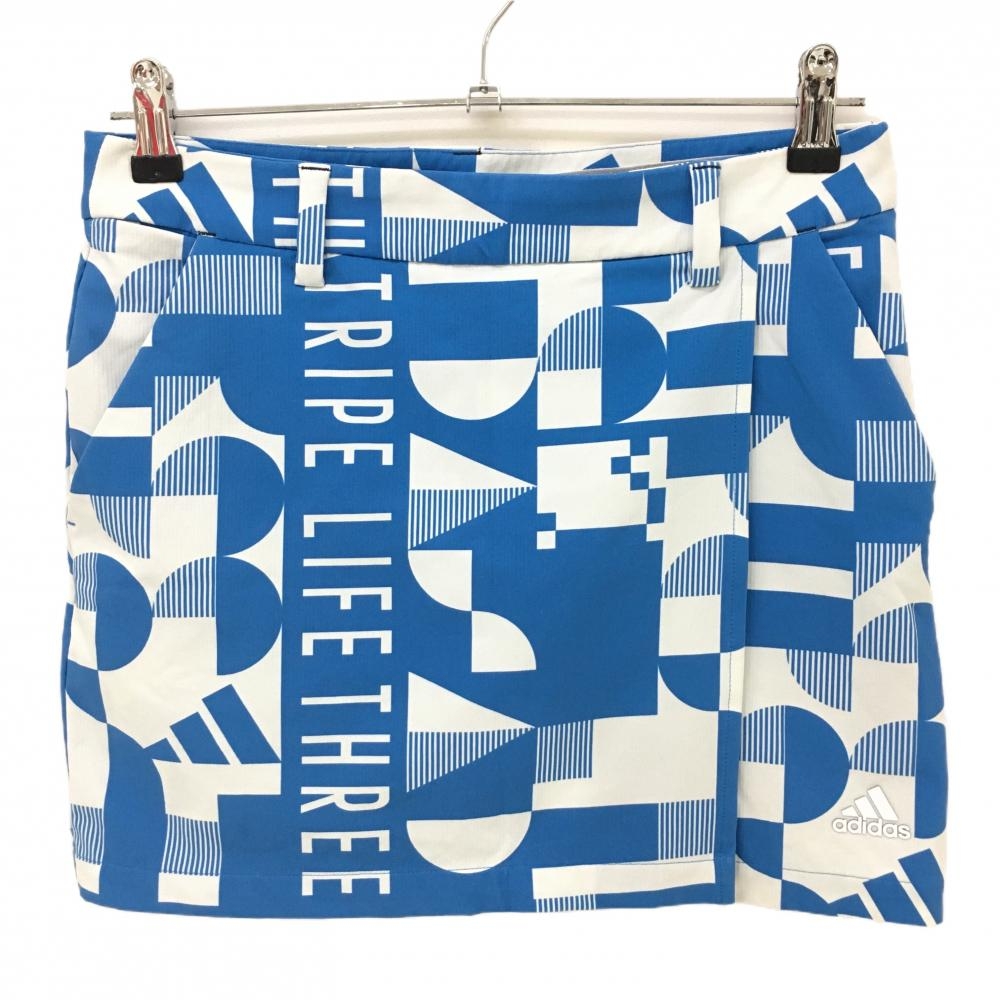 アディダス スカート ブルー×白 総柄 織生地 内側インナーパンツ レディース S ゴルフウェア adidas