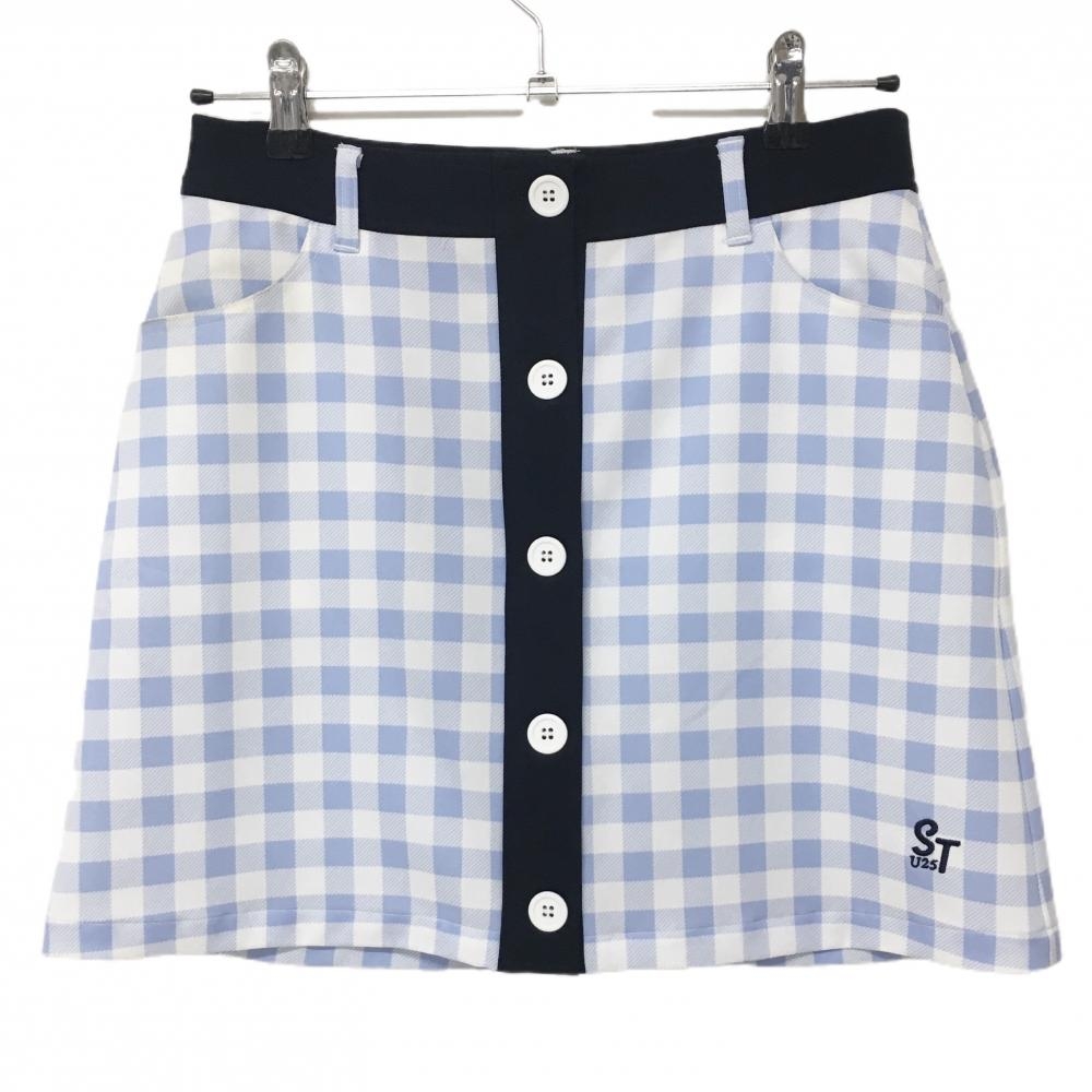 サマンサタバサ UNDER25 ラップスカート 白×ライトブルー ギンガムチェック 裾刺しゅう レディース M ゴルフウェア Samantha Thavasa